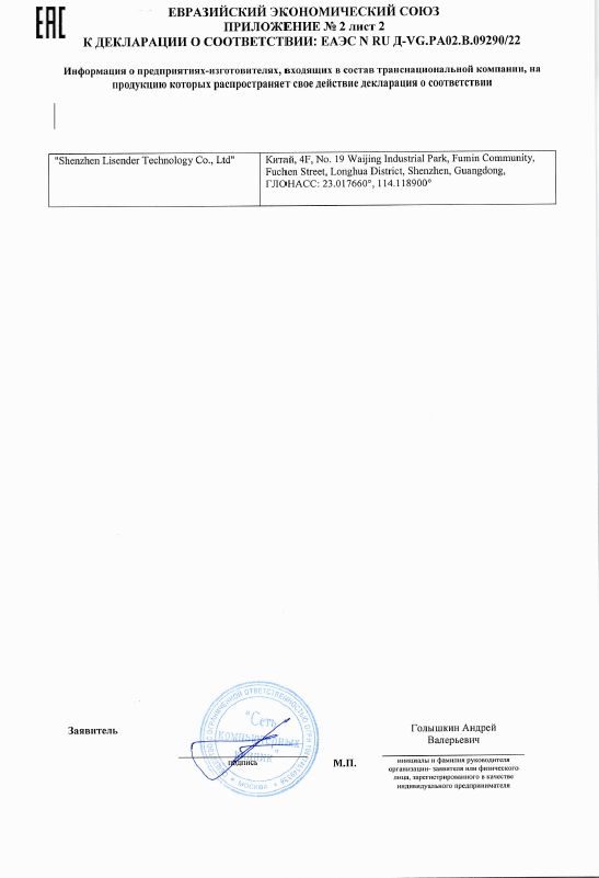 ЕАЭС N RU Д-VG.РА02.В.09290/22 | 24.02.2022 | 23.02.2027 |