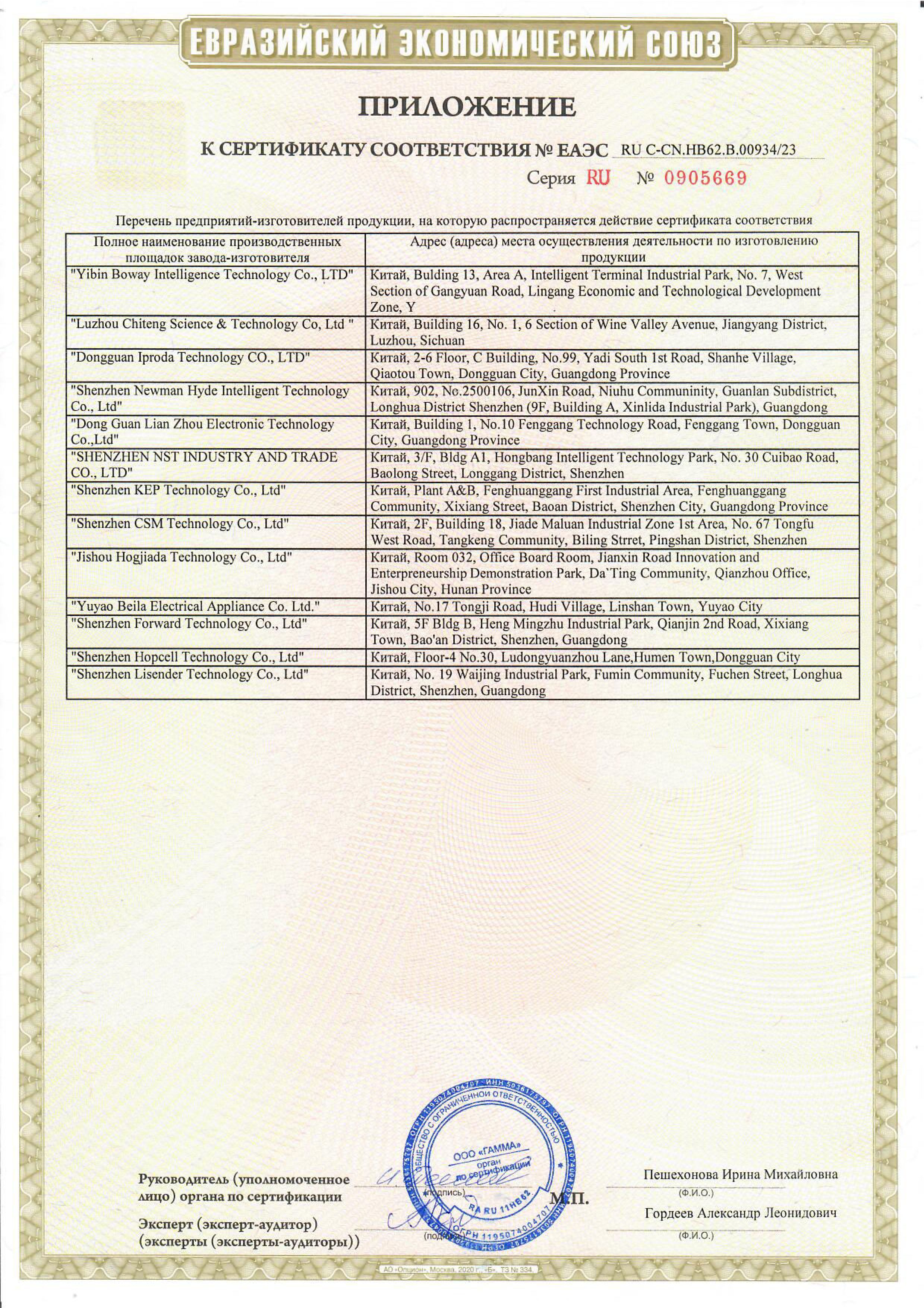 ЕАЭС RU С-CN.НВ62.В.00934/23 | 12.02.2023 | 11.02.2028 |