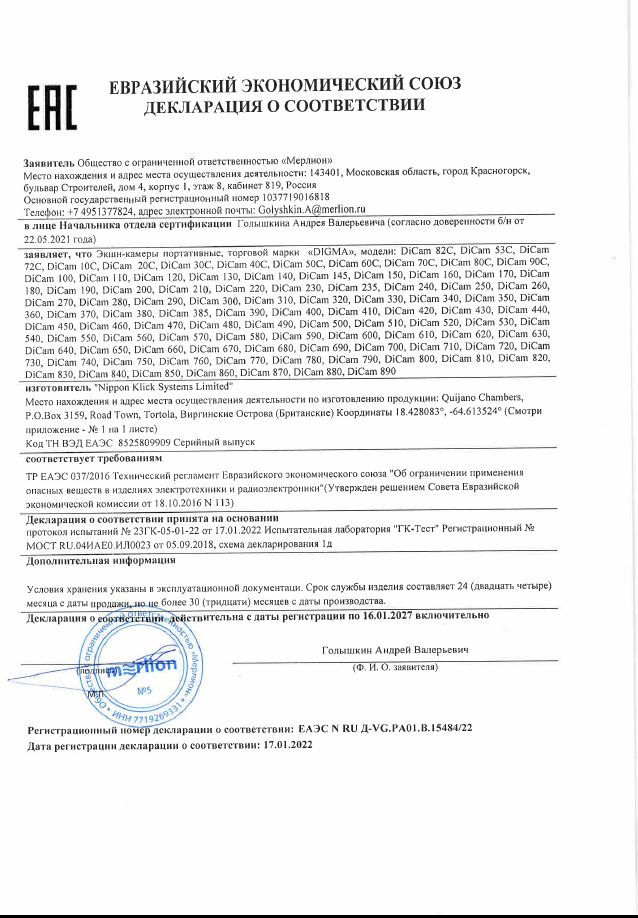ЕАЭС N RU Д-VG.РА01.В.15484/22 | 16.01.2022 | 15.01.2027 |