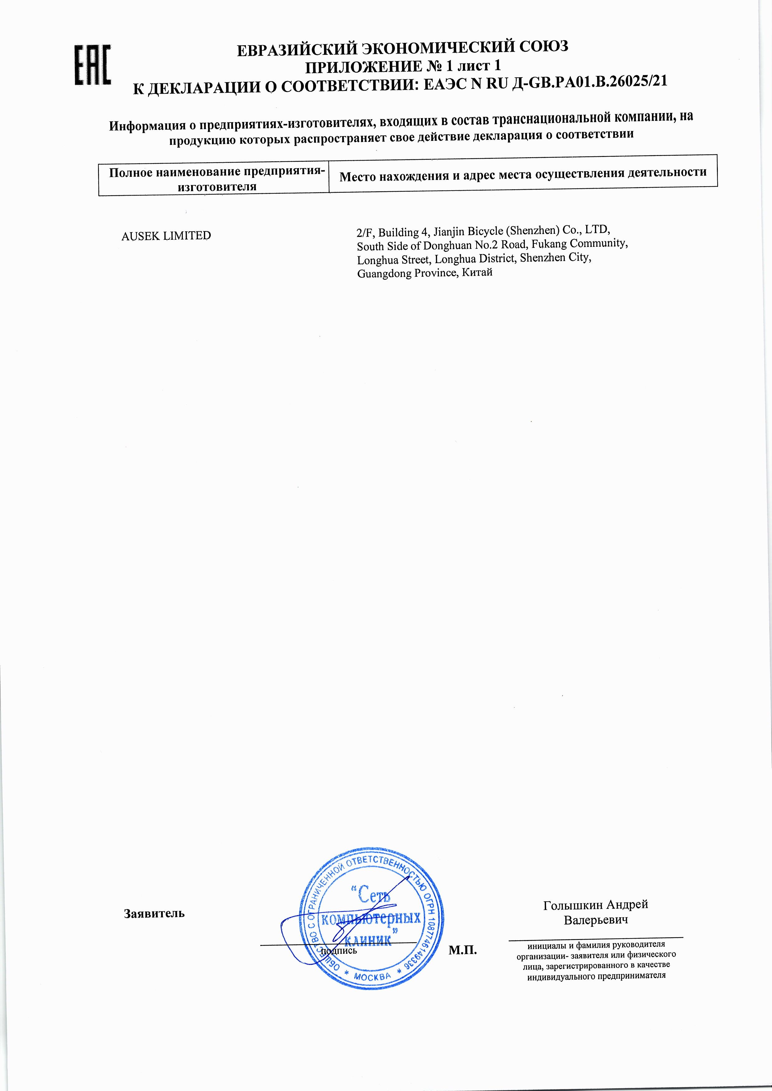 ЕАЭС N RU Д-GB.РА01.В.26025/21 | 20.04.2021 | 19.04.2026 |