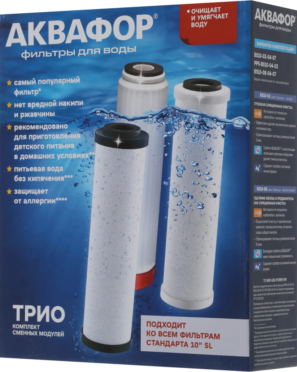 Комплект картриджей Аквафор B510-03-04-07 для проточных фильтров ресурс:6000л (100790)