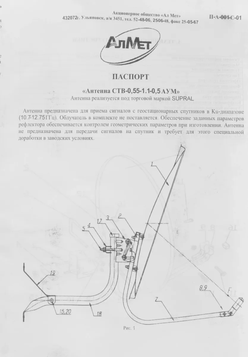 Комплект установщика спутникового телевидения. Антенна SUPRAL предназначена для приема сигналов с геостационарных спутников в Ku-диапазоне (10.7-12.75 ГГц). В комплекте отсутствует приемник (ресивер или КАМ модуль приобретаются дополнительно). -
