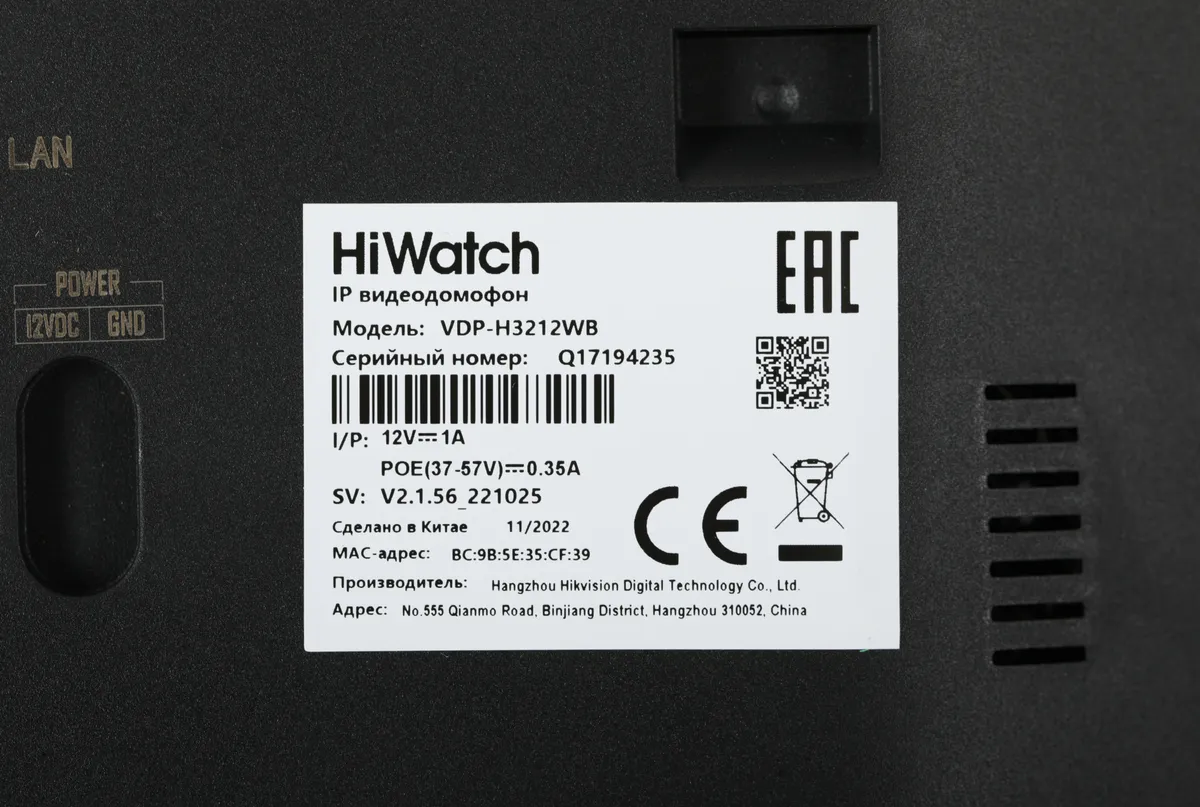 Видеодомофон HiWatch Pro VDP-H3212WB черный (VDP-H3212WB)