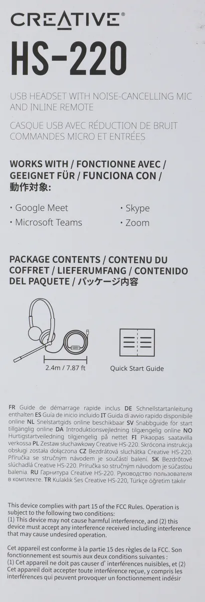 | Наушники с микрофоном Creative HS-220 черный 2.4м накладные USB оголовье (51EF1070AA000) | ЕАЭС RU С-SG.НВ46.В.02638/24 | 09.07.2024 | 08.07.2025 |