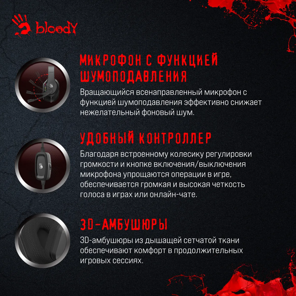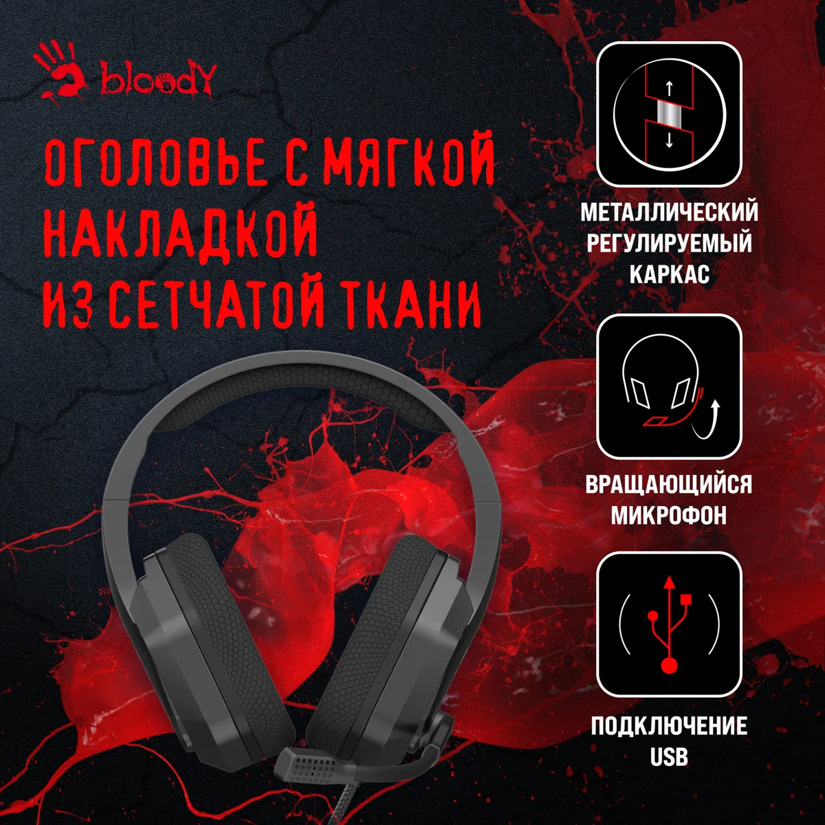 Наушники с микрофоном A4Tech Bloody G260 черный 2м мониторные USB оголовье (G260) (G260)