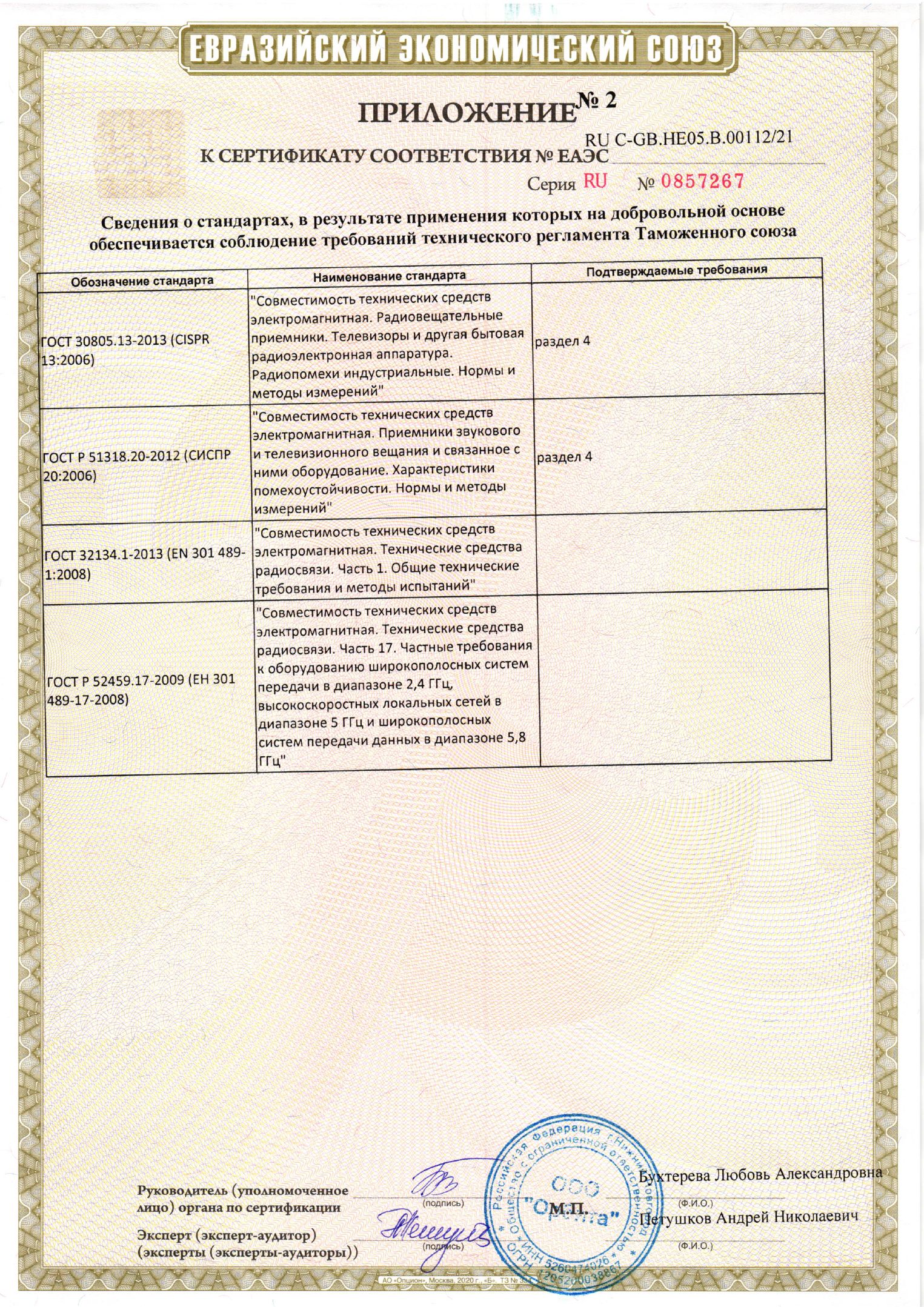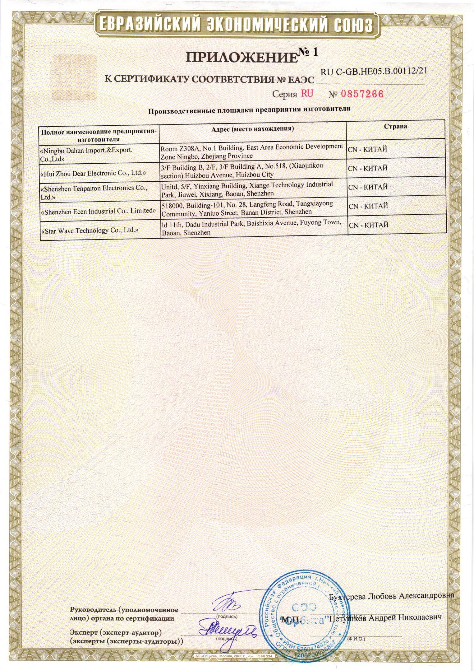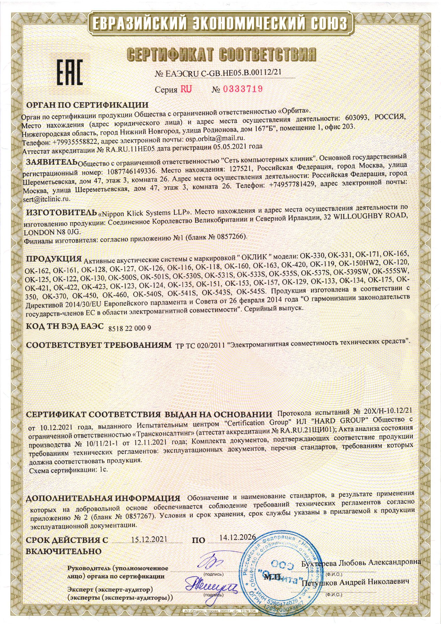 ЕАЭС RU С-GB.НЕ05.В.00112/21 | 14.12.2021 | 13.12.2026 |