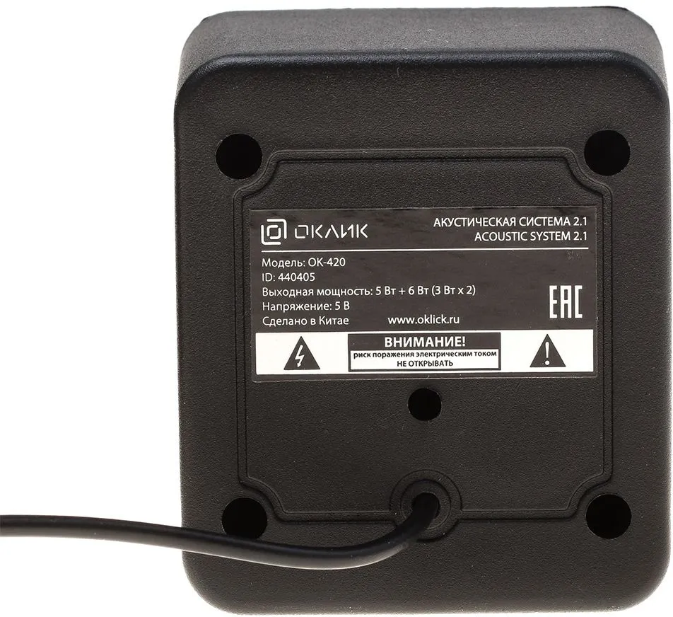 | Колонки Оклик OK-420 2.1 черный 11Вт | ЕАЭС RU С-GB.НЕ05.В.00112/21 | 14.12.2021 | 13.12.2026 |