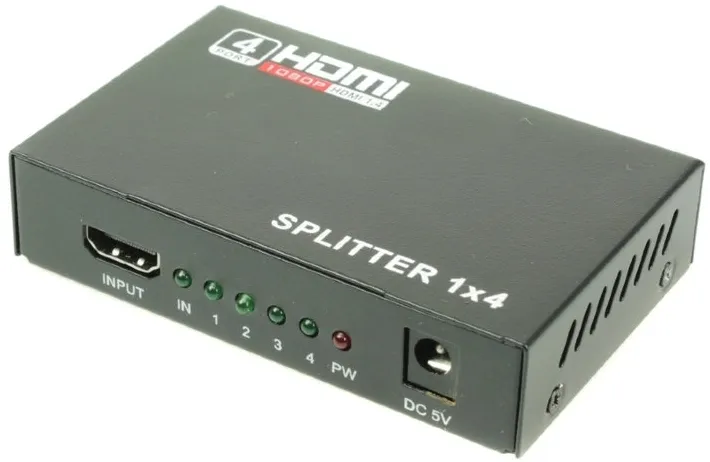 Разветвитель сигнала HDMI (1вх./4вых.).Максимальное разрешение 4K2K(30Гц). Поддержка 3D и HDCP. Скорость передачи данных до 10,2Гбит/с. Вх. - HDMI(A)/Роз.2,1х5мм(DC5V). Вых. - HDMI(A)x4. В комплекте БП DC5V(1А). Вес: 0,13кг. -