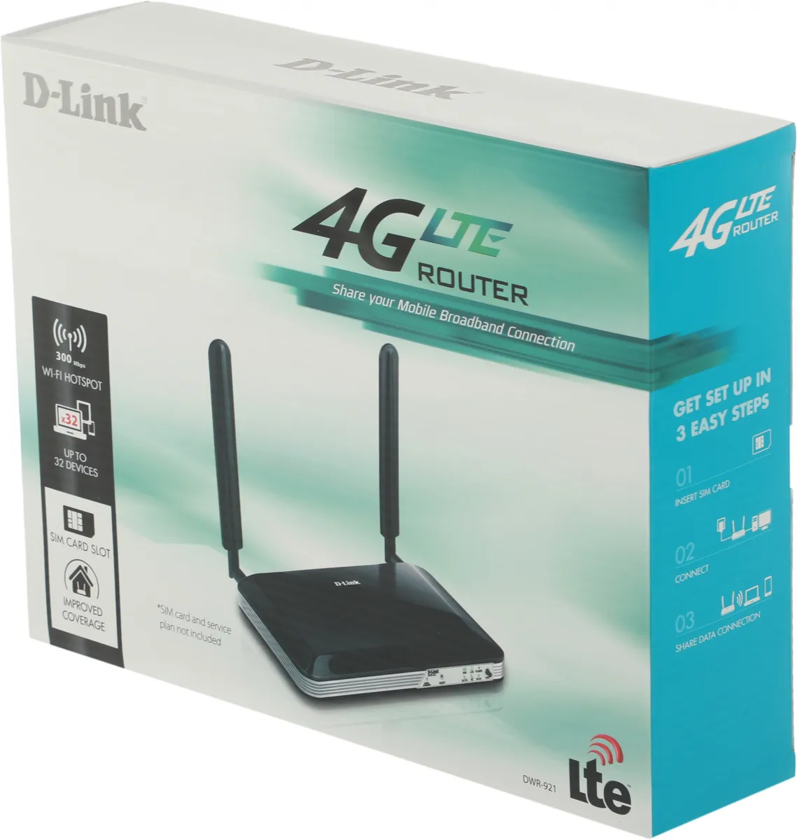Беспроводной маршрутизатор D-Link DWR-921/E3GR4HD с поддержкой 4G LTE. Маршрутизатор оснащен встроенным LTE-модемом, который обеспечивает высокоскоростное мобильное 3G/4G-соединение со скоростью приема данных до 150 Мбит/с и скоростью передачи данных до 5 -