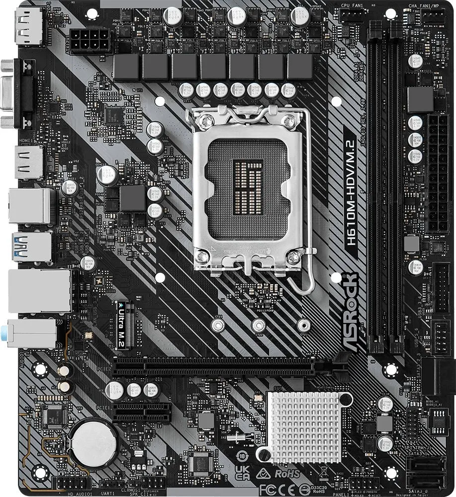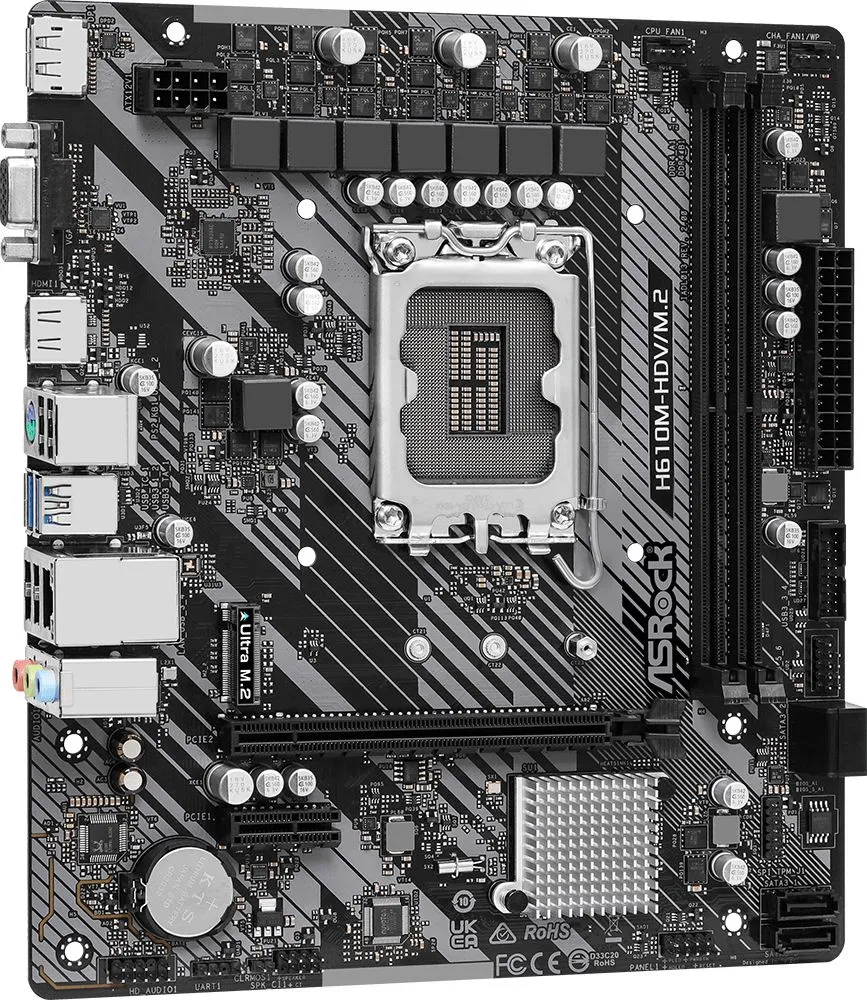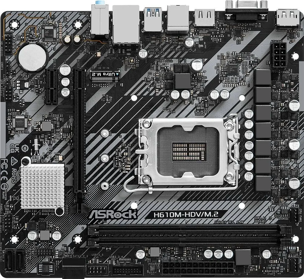 Материнская плата ASROCK H610M-HDV/M.2 R2.0, LGA1700, H610, 2*DDR4, (H610M-HDV/M.2 R2.0)