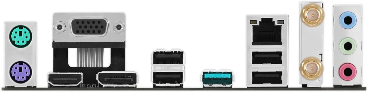 1xDisplayPort, 1xVGA, 1xHDMI, 1xPS/2 клавиатура(фиолетовый), 1xPS/2 мышь (зеленый), 3xАудио Jack, 1xCOM порт, 1xВыход S/DPIF, 6xUSB 2.0, 1xUSB 3.2 Gen 2, 2xUSB 3.2 Gen 1 -