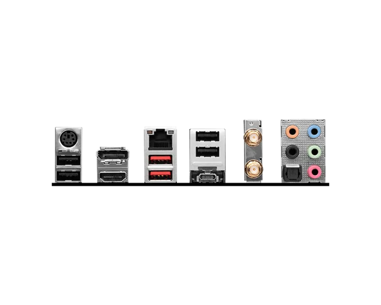 USB 3.2 Gen 2 Type-C, 2хUSB 3.2 Gen 2 Type-A, USB 3.2 Gen 1 Type-C, 2хUSB 3.2 Gen 1 Type-A, 8хUSB 2.0, HDMI, DisplayPort, RJ-45, PS/2, 5хАудио, S/PDIF, JLPT, JCOM -