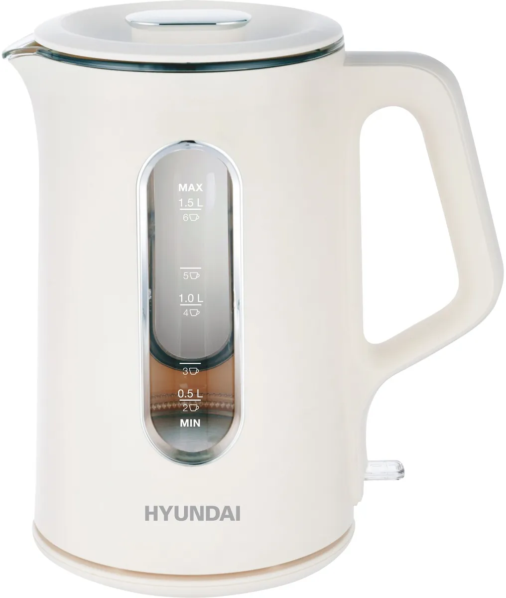 Чайник электрический Hyundai HYK-G8888 1.5л. 1700Вт кремовый/прозрачный корпус: (HYK-G8888)