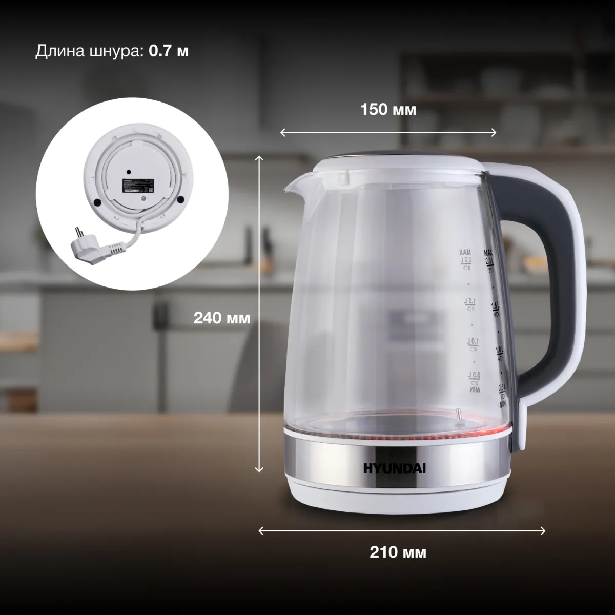 Чайник электрический Hyundai HYK-G8880 2л. 2200Вт серый/серебристый корпус: (HYK-G8880)