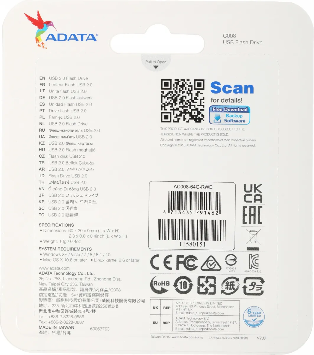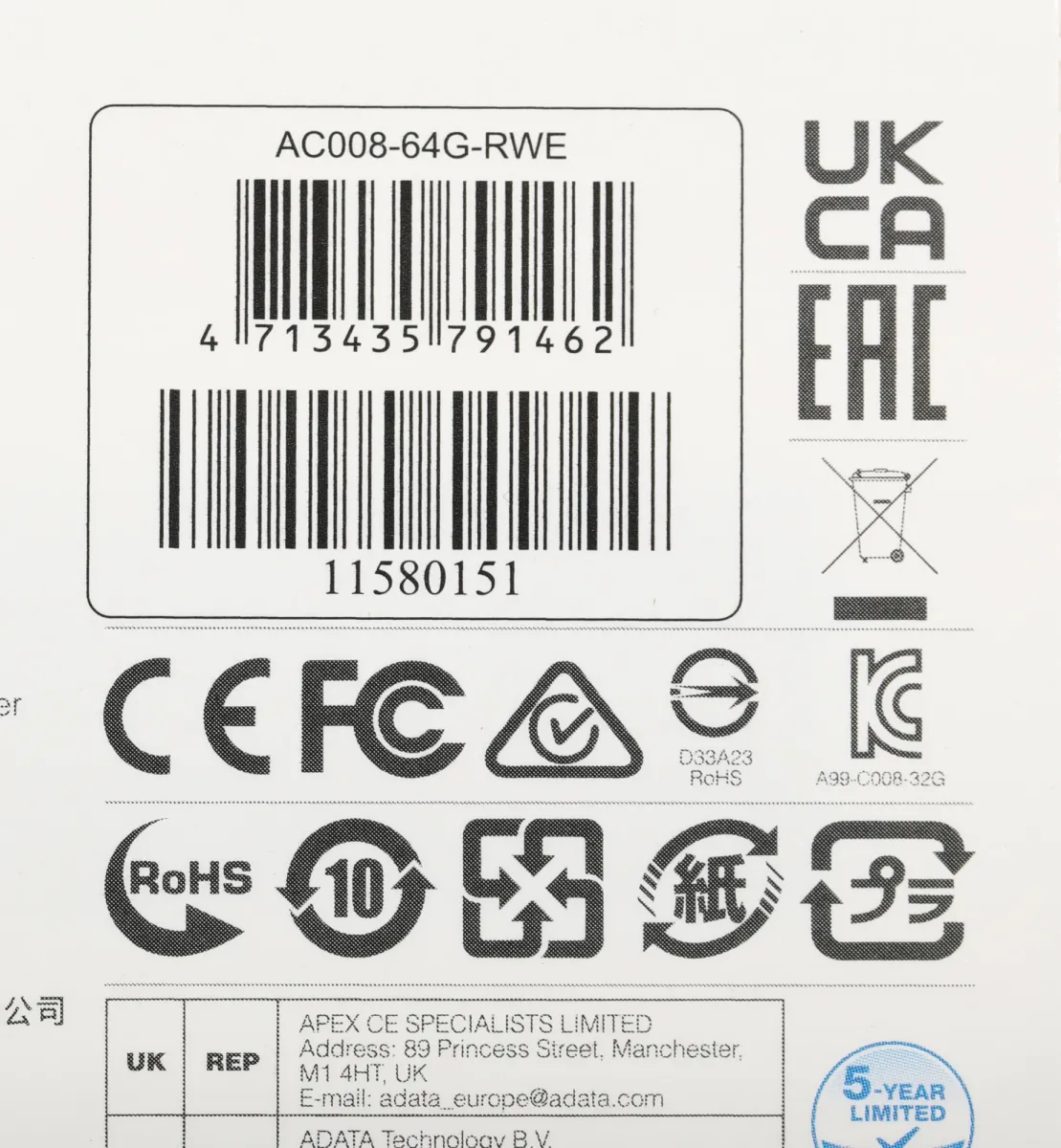 | Флеш Диск A-Data 64GB Classic C008 AC008-64G-RWE USB2.0 синий/белый | ЕАЭС N RU Д-TW.РА03.В.75724/25 | 17.04.2025 | 16.04.2030 |