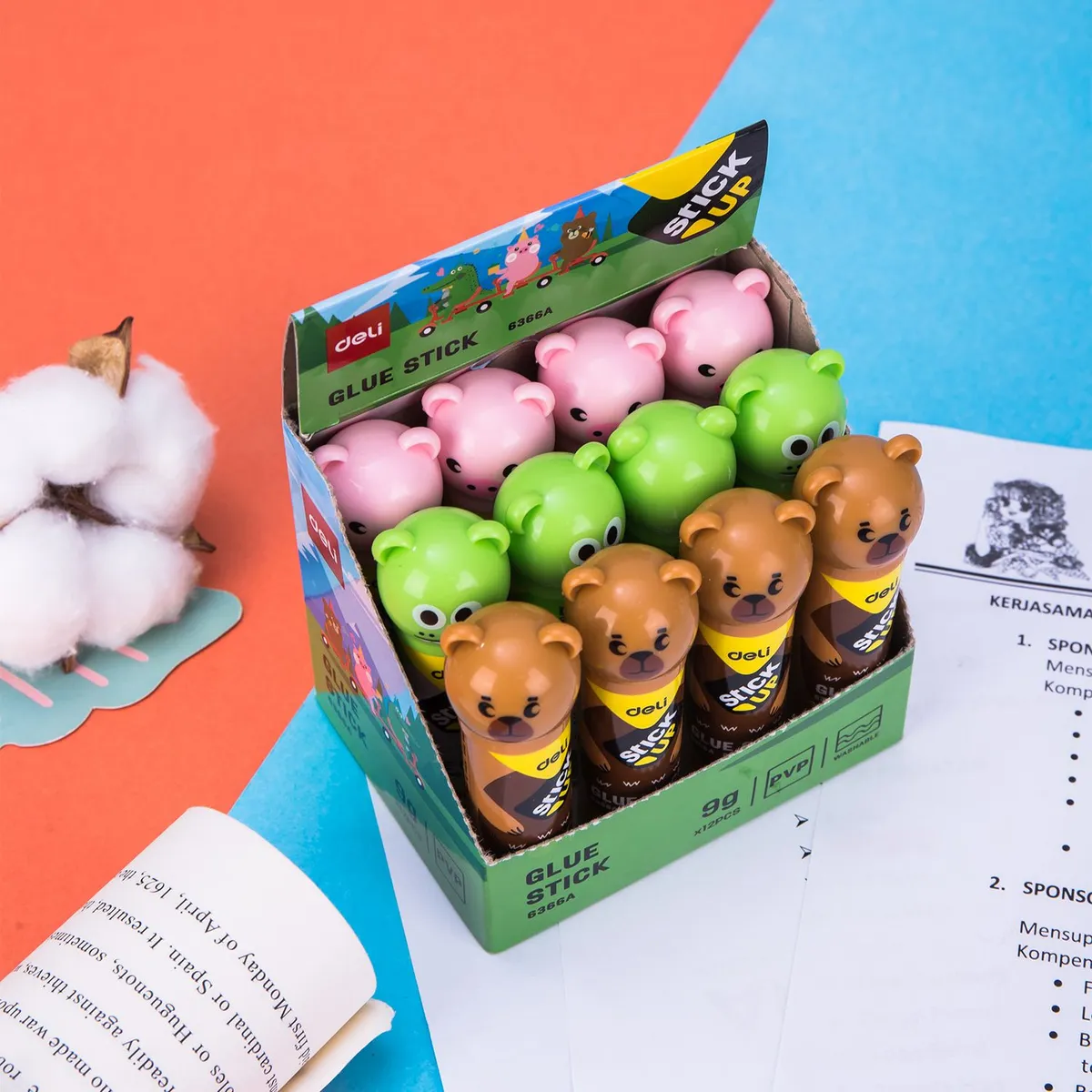 Клей-карандаш Deli E6366A 9гр корп.ассорти ПВП дисплей картонный детский Stick UP (E6366A)