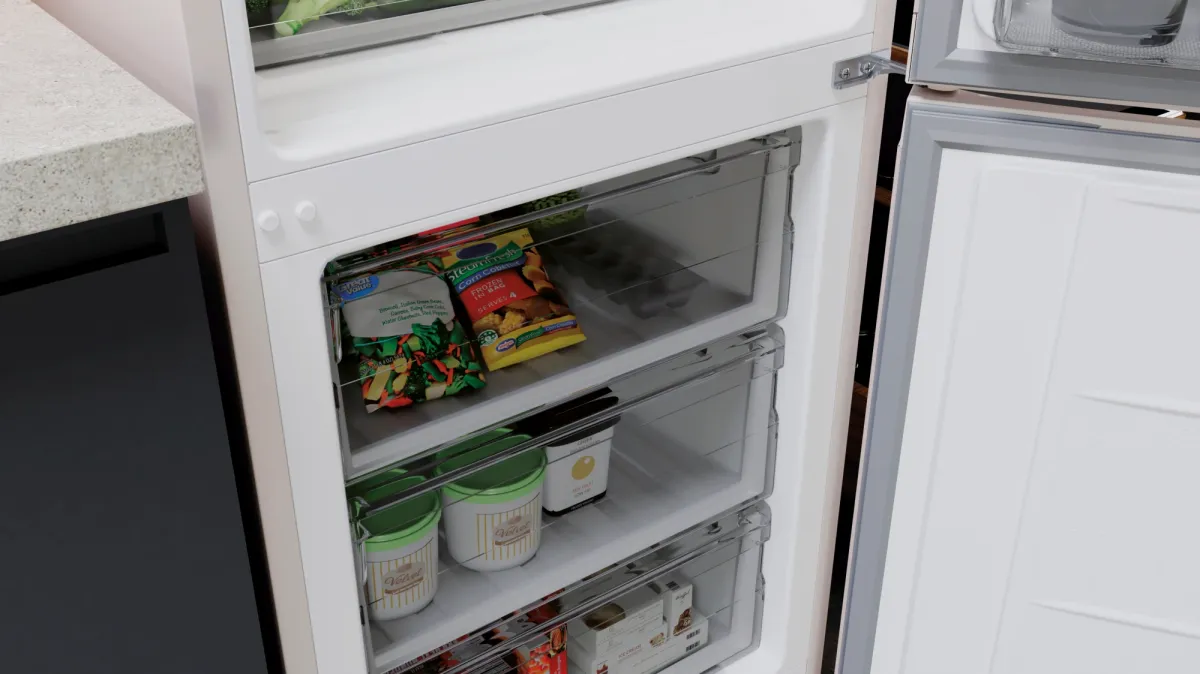 Система охлаждения Total No Frost, эргономичная структура двери, защитный уплотнитель, ящик для овощей и фруктов, фронтальная ручка с накладкой -
