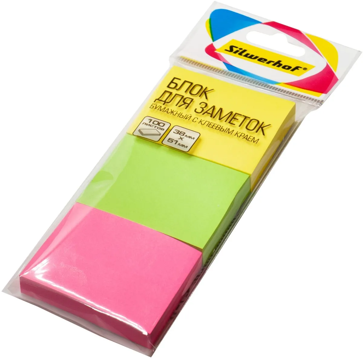 Блок самоклеящийся бумажный Silwerhof 38x51мм 100лист. 75г/м2 неон (ML1976322)