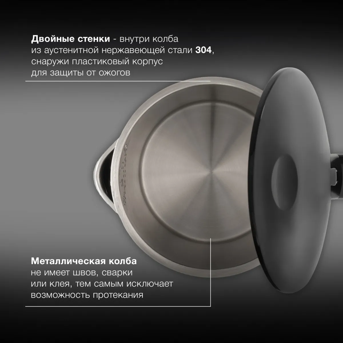 Электрический чайник с двойными стенками и открытой ручкой для быстрого приготовления теплой и горячей воды нужной температуры под разные цели. Это не просто чайник, а современный и качественный инструмент на вашей кухне под разные задачи. -