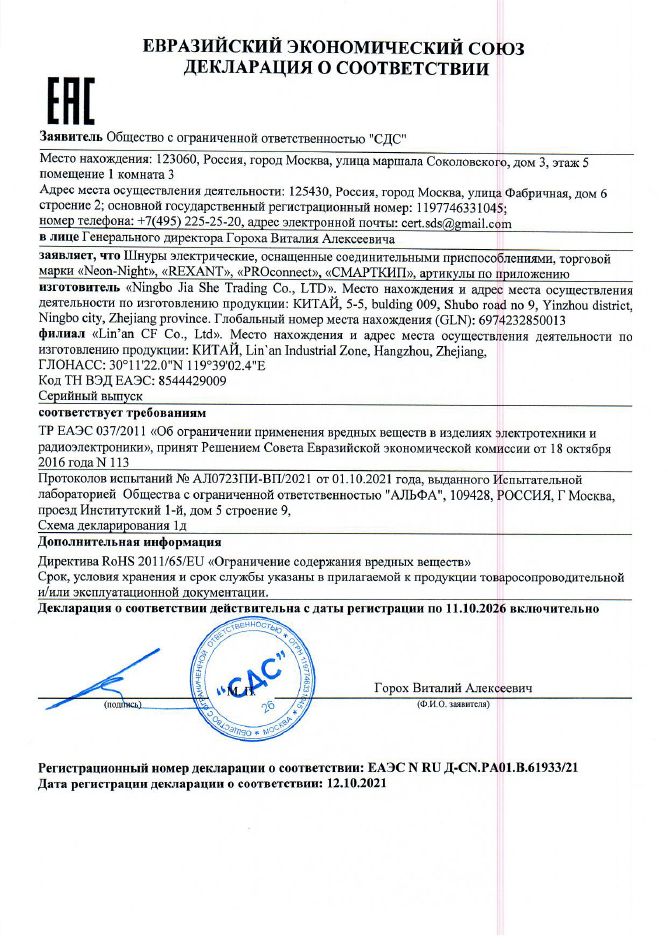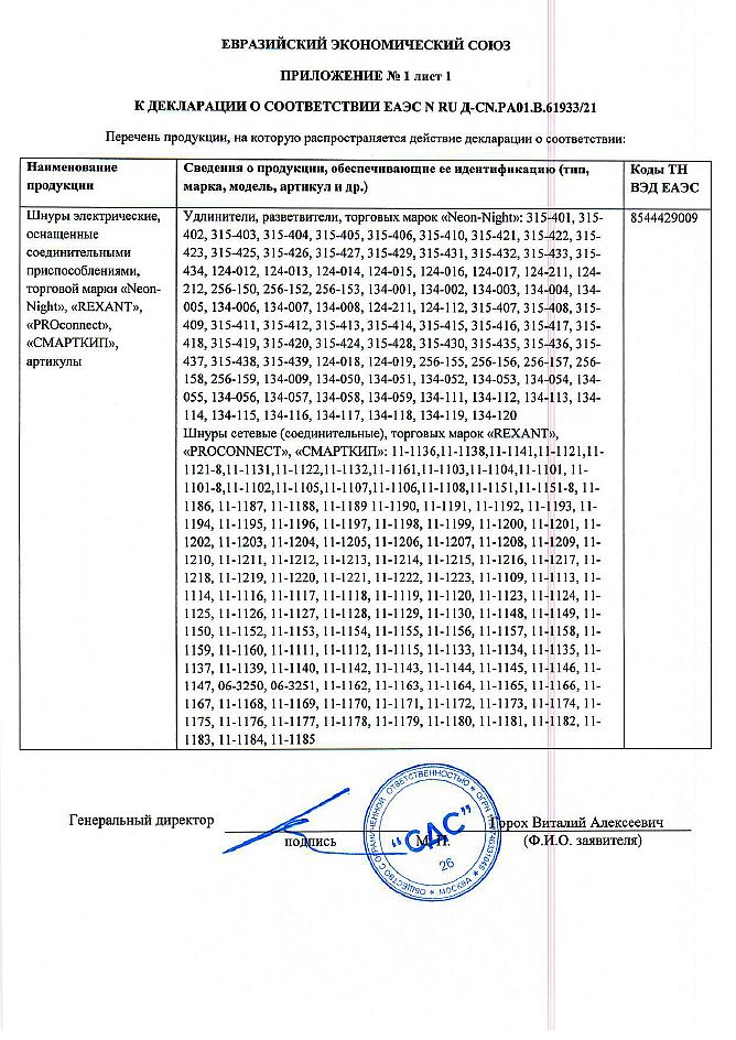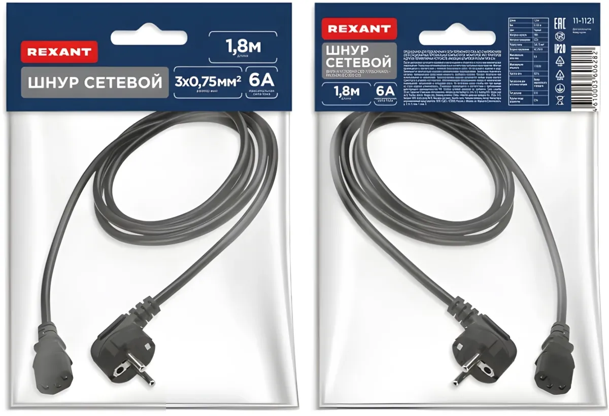 | Шнур питания Rexant 11-1121 C13-Schuko проводник.:3x0.75мм2 1.8м 220В 6А (упак.:1шт) черный | ЕАЭС N RU Д-CN.РА01.В.61933/21 | 11.10.2021 | 10.10.2026 |