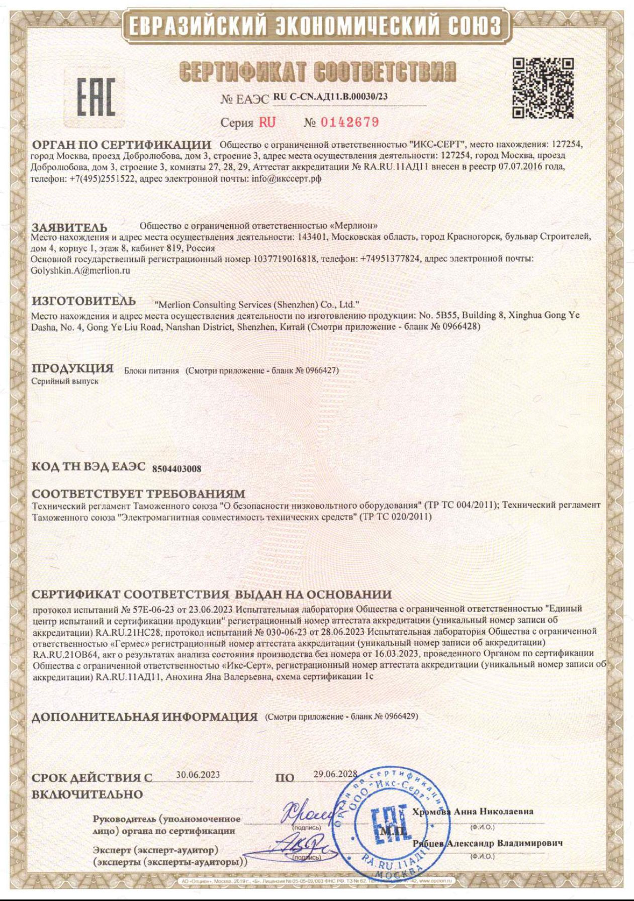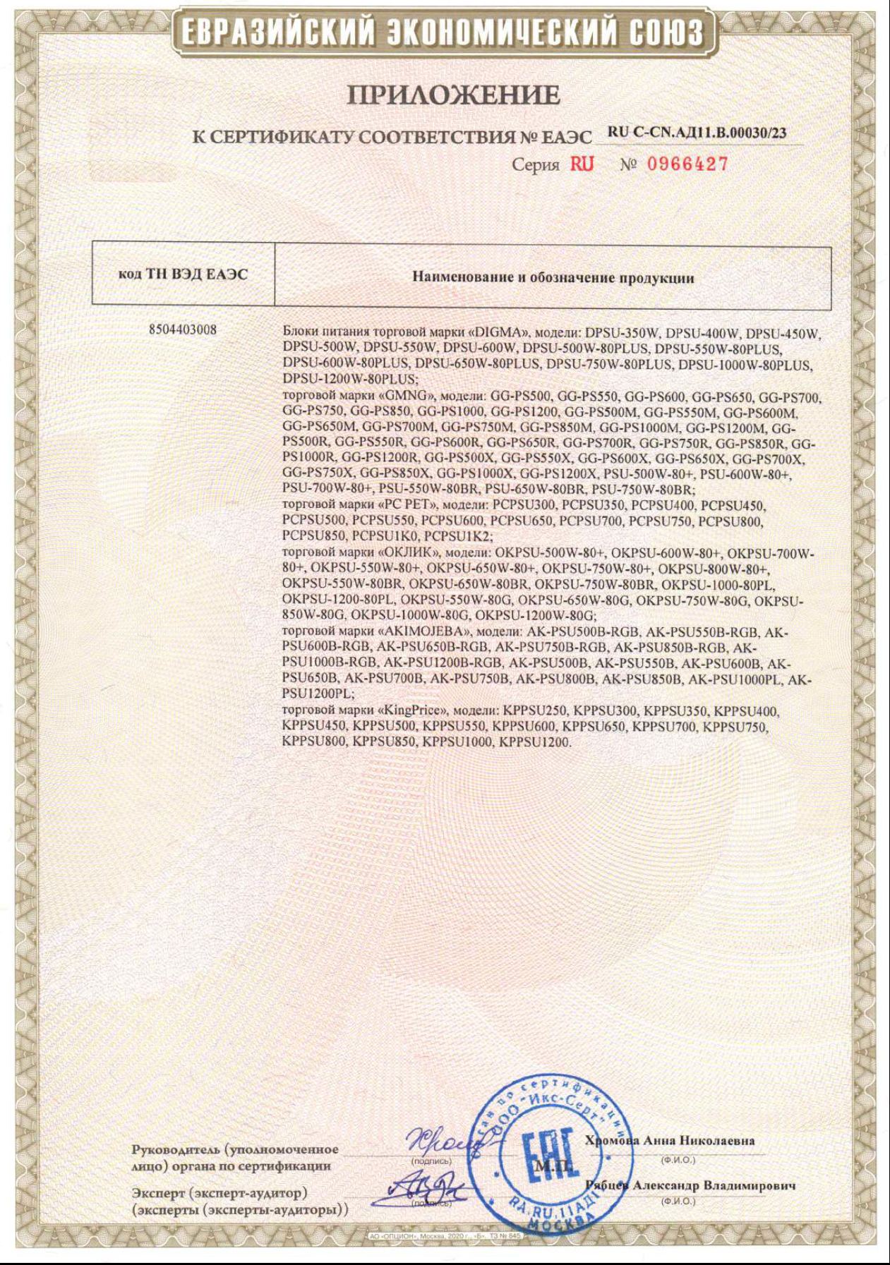 | Блок питания Digma ATX 550W DPSU-550W (20+4pin) 120mm fan 4xSATA RTL | ЕАЭС RU С-CN.АД11.В.00030/23 | 29.06.2023 | 28.06.2028 |