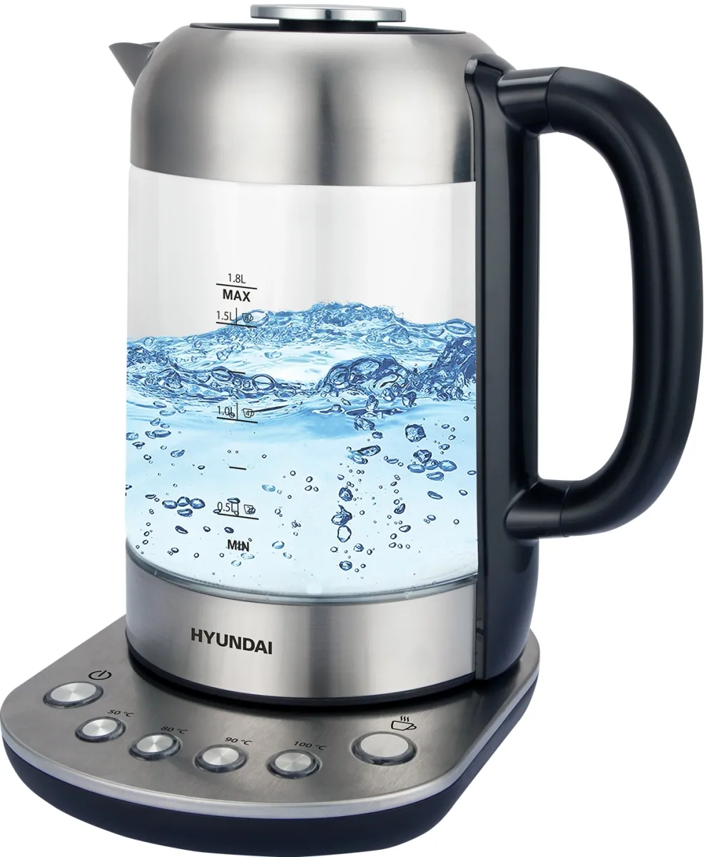 Чайник электрический Hyundai HYK-G8407 1.8л. 2200Вт черный/прозрачный корпус: (HYK-G8407)