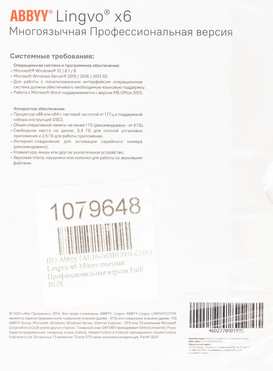 ПО Abbyy Lingvo x6 Многоязычная профес.вер. Fulll Box (AL16-06SBU001-0100)