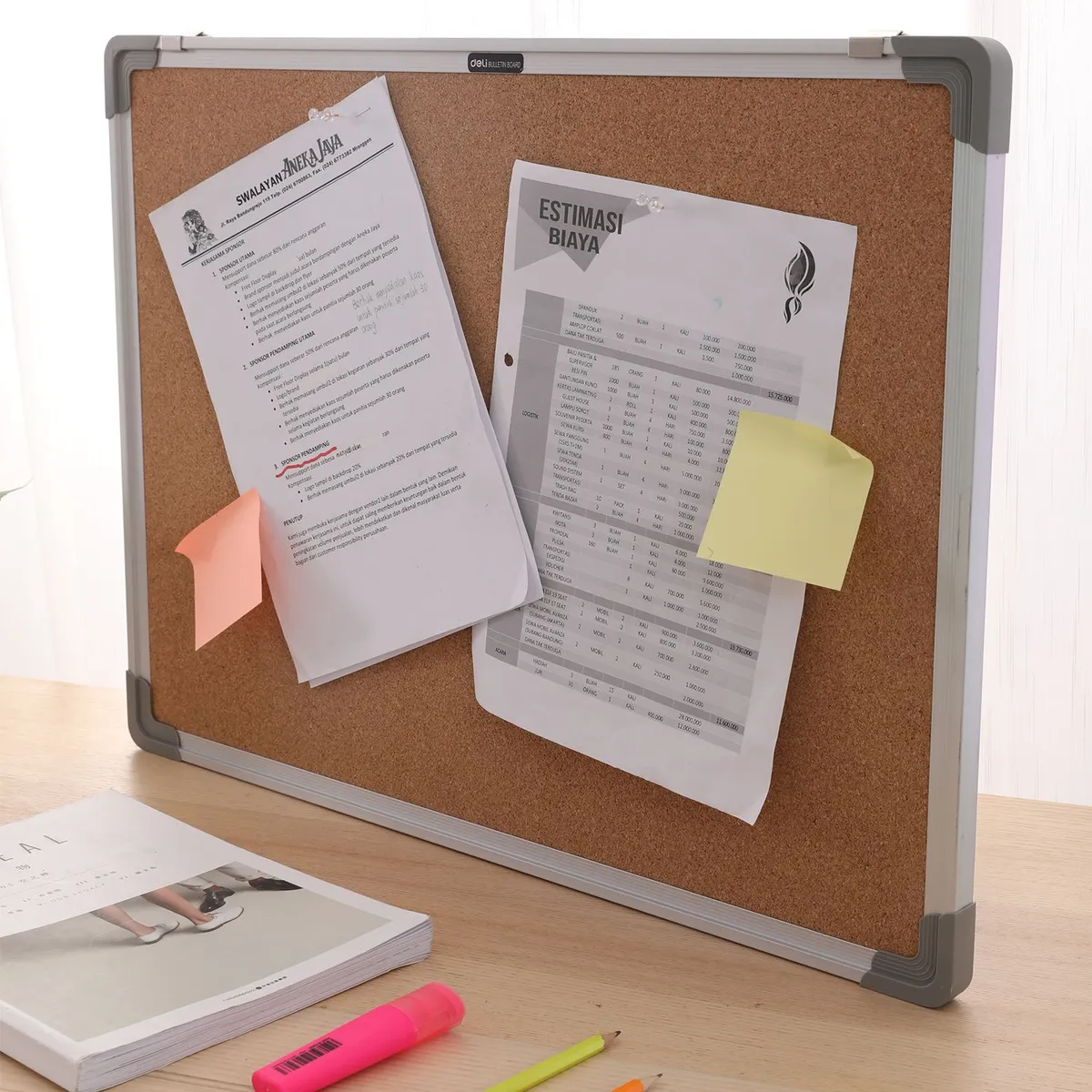 Пробковая демонстрационная доска с алюминиевой рамой. Информационный материал приклепляется с помощью кнопок или булавок. -