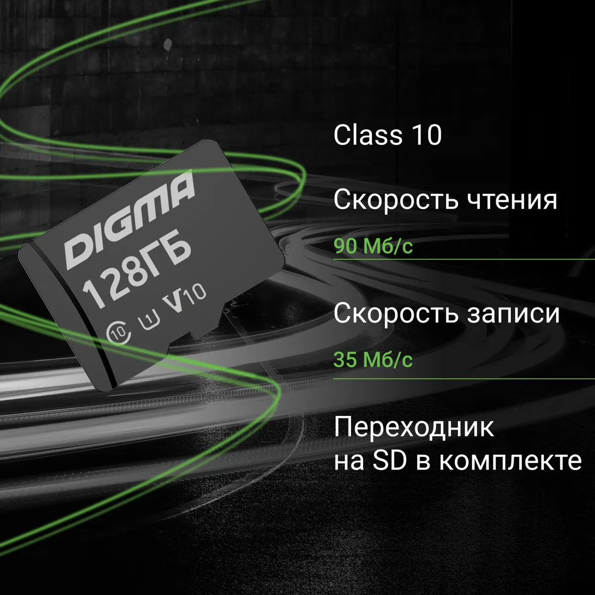 Флеш карта microSDXC 128GB Digma CARD10 V10 + (DGFCA128A01)
