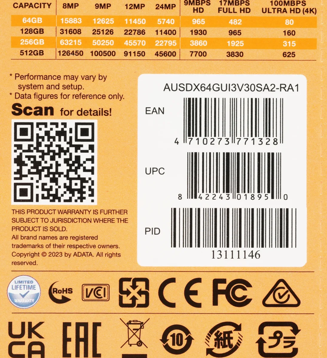 Флеш карта microSDXC 64GB A-Data AUSDX64GUI3V30SA2-RA1 Premier Pro (AUSDX64GUI3V30SA2-RA1)