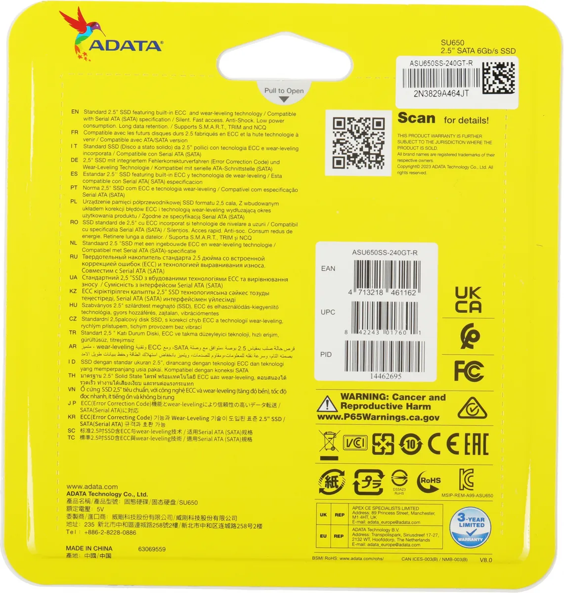 Накопитель SSD A-Data SATA-III 240GB ASU650SS-240GT-R Ultimate SU650 (ASU650SS-240GT-R)