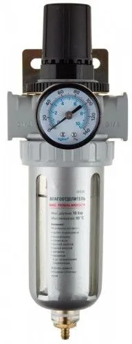 Набор осуществляет тонкую очистку воздуха от влаги и масла и регулирует значение входного давления. Влагоотделитель обладает стравливающим клапаном для сброса конденсата.