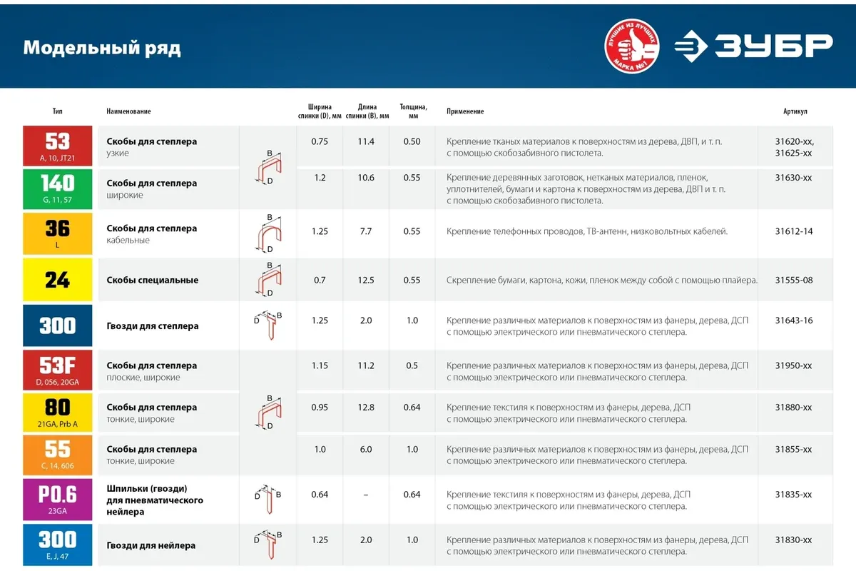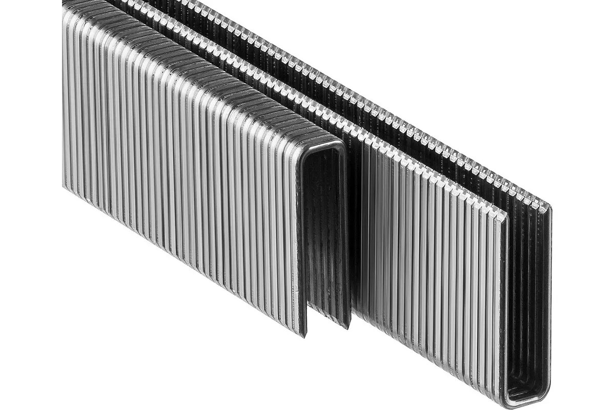 Скобы изготовлены из специальной проволоки, которая предотвращает излом или изгиб во время удара. Специализированная заточка обеспечивает полное забивание скобы. Точность геометрии и размеров. -
