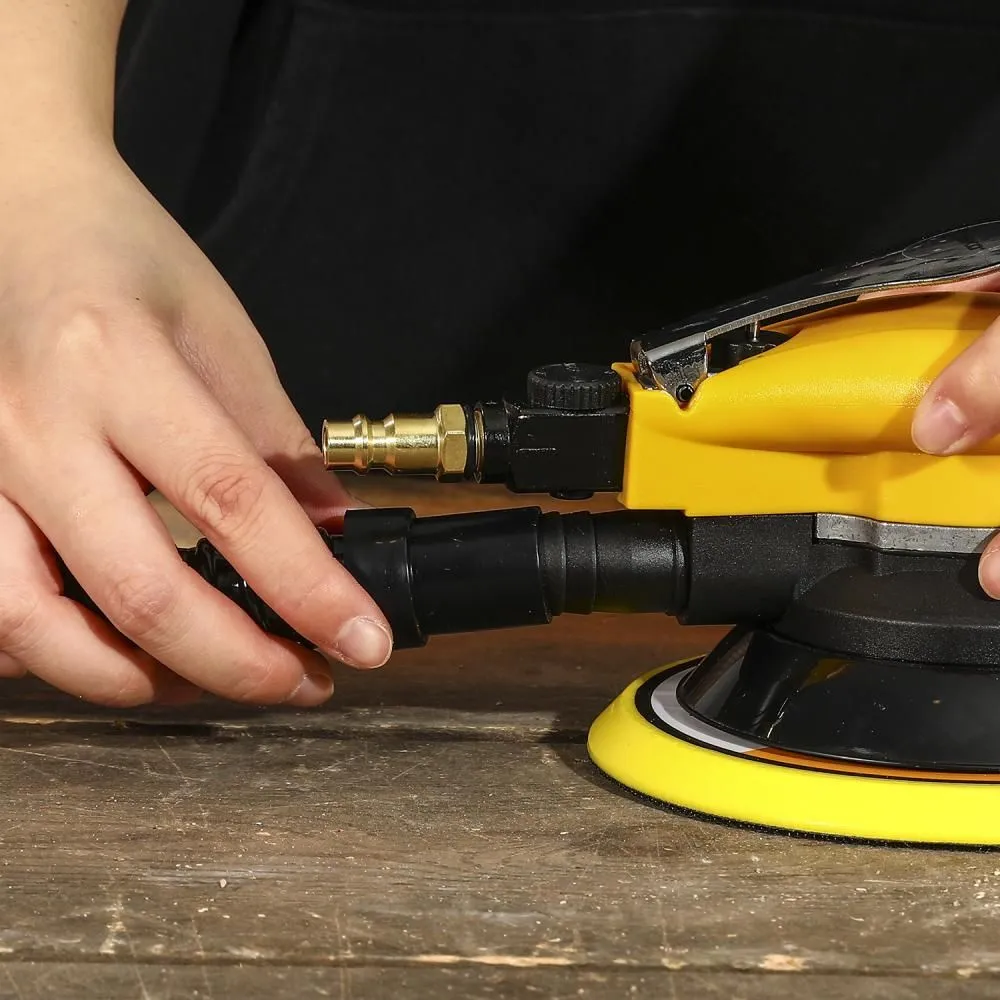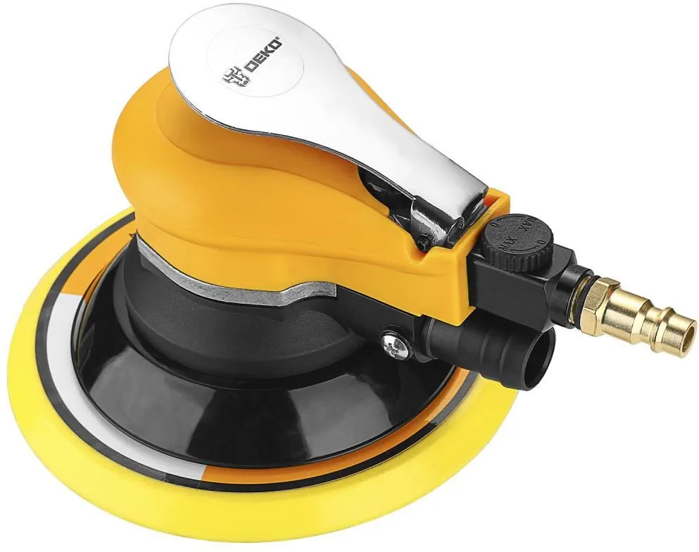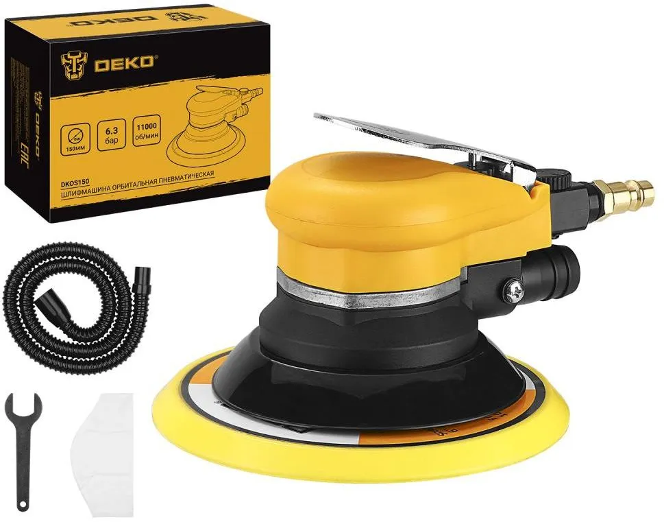 Пневматическая орбитальная шлифовальная машина DEKO DKOS150 подходит для быстрого снятия материала с ровных или профильных поверхностей, а также для подготовки поверхностей под покраску или лак. -
