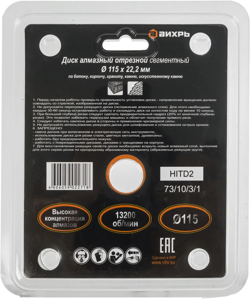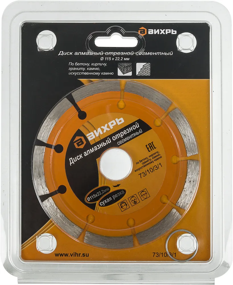 Диск отрезной по бет. Вихрь 73/10/3/1 d=115мм d(посад.)=22.2мм (73/10/3/1)