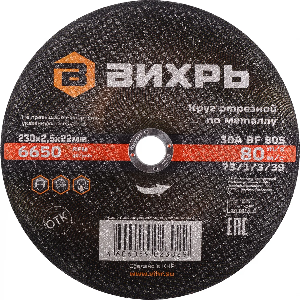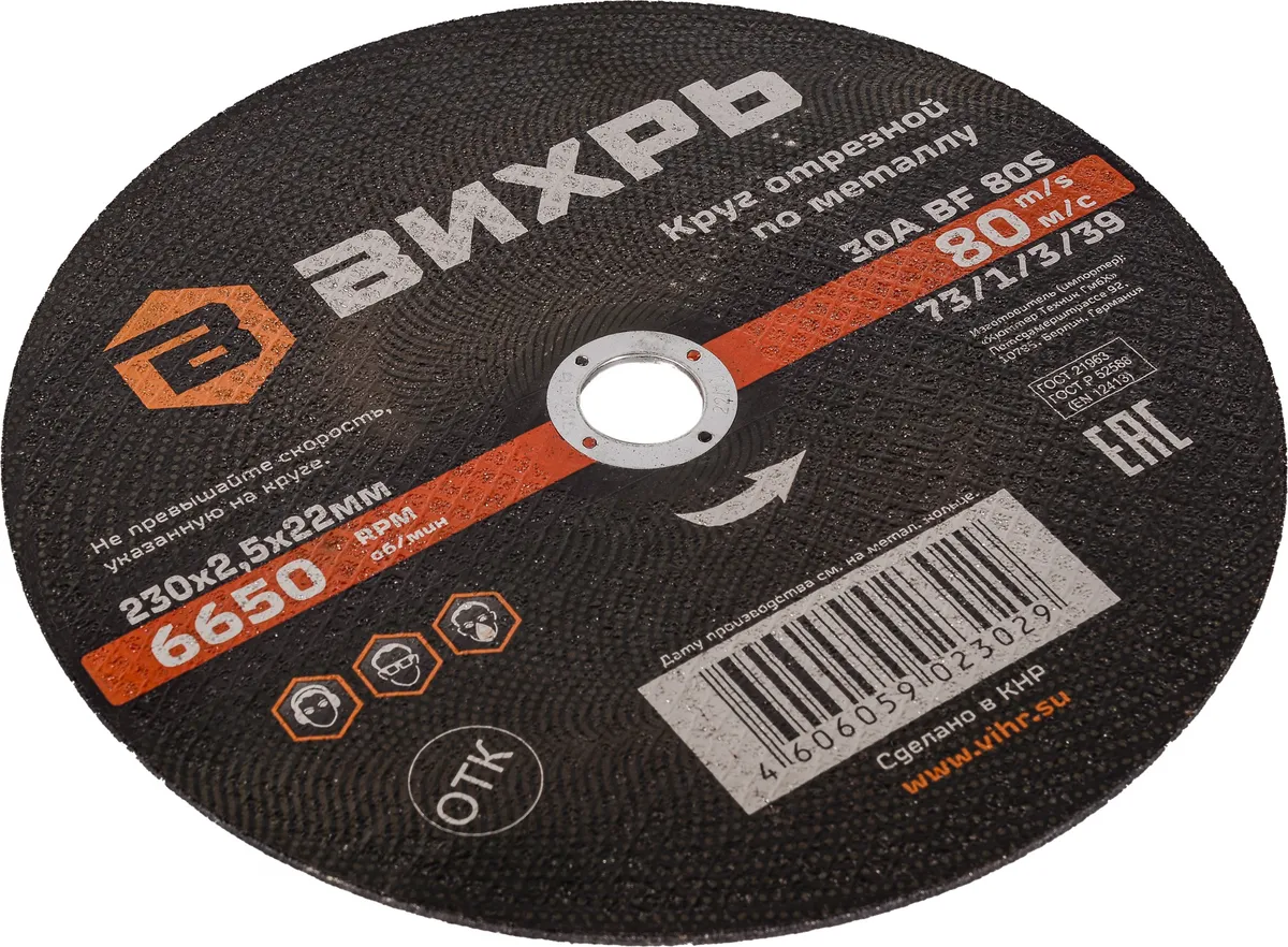 Диск отрезной по мет. Вихрь 73/1/3/39 d=230мм d(посад.)=22.2мм (73/1/3/39)