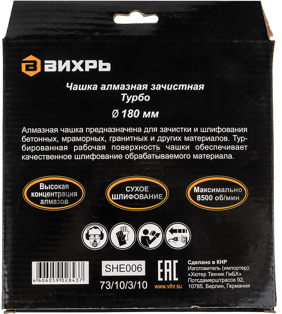 Чашка по бет. Вихрь 73/10/3/10 d=180мм (угловые шлифмашины) (73/10/3/10)