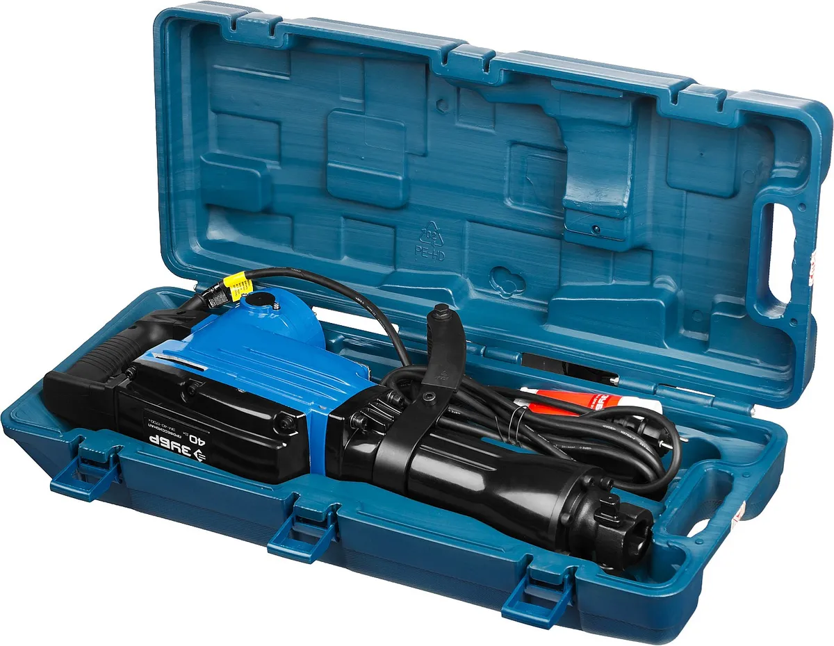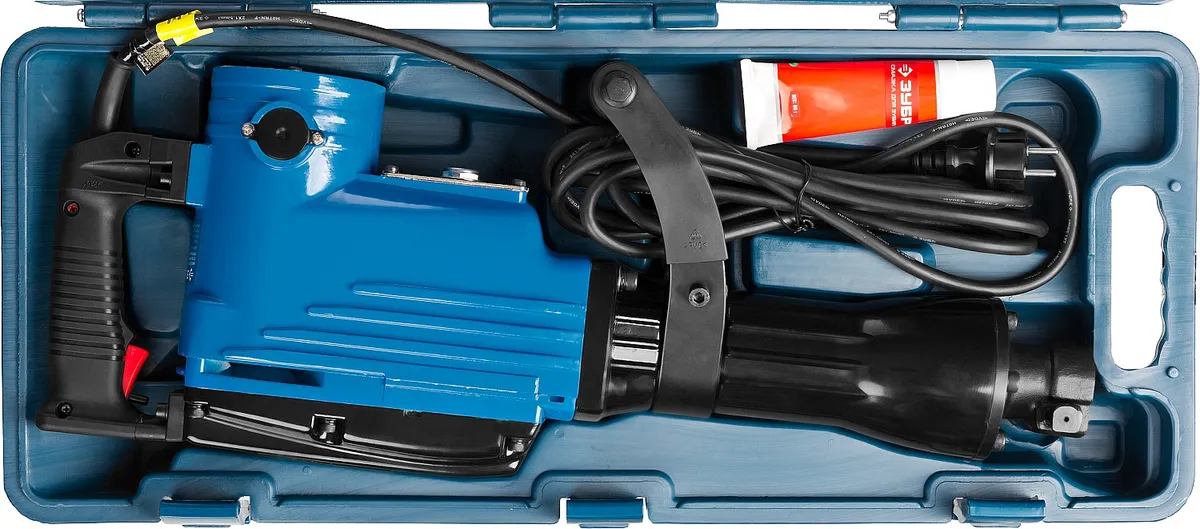 Молоток отбойный, рукоятка дополнительная, ключ - 3 шт., смазка для бура, кейс, руководство по эксплуатации. -