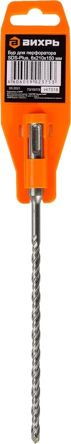 Бур SDS-Plus «ВИХРЬ» предназначен для ударно-вращательного сверления отверстий в бетоне, кирпичной кладке, природном и искусственном камне. Угол заточки наконечника – 130 градусов -