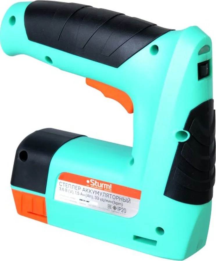 Степлер аккумуляторный Sturm! CET1201 скобы тип 53: 11.4мм 4-10мм гвозди тип 47: 14мм