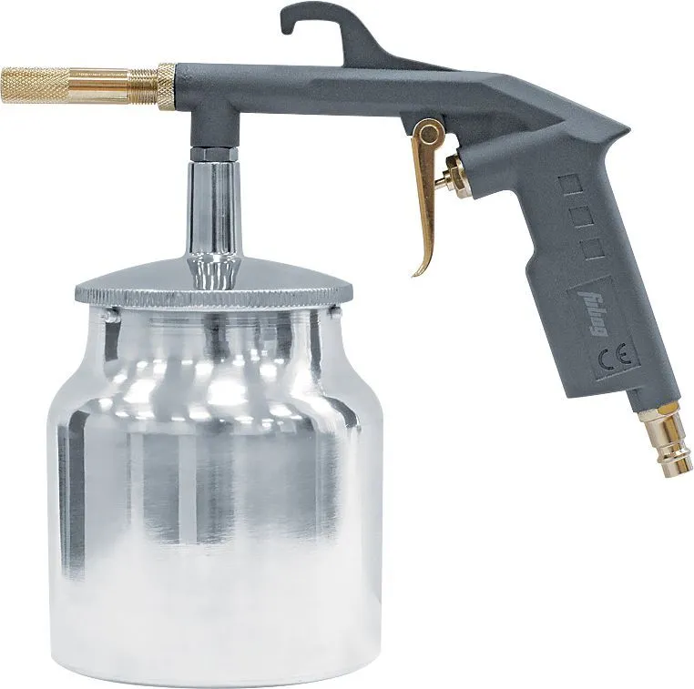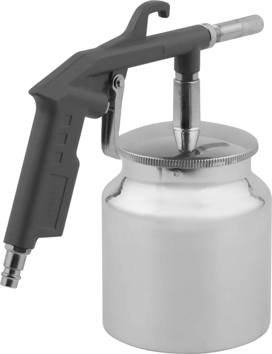 Пневмопистолет пескоструйный с бачком. Используется для шлифовки деревянных, металлических, каменных поверхностей и подготовке их к нанесению лакокра сочных материалов. Продув совершается выходящим под давлением воздухом с абразивным веществом, которое по -