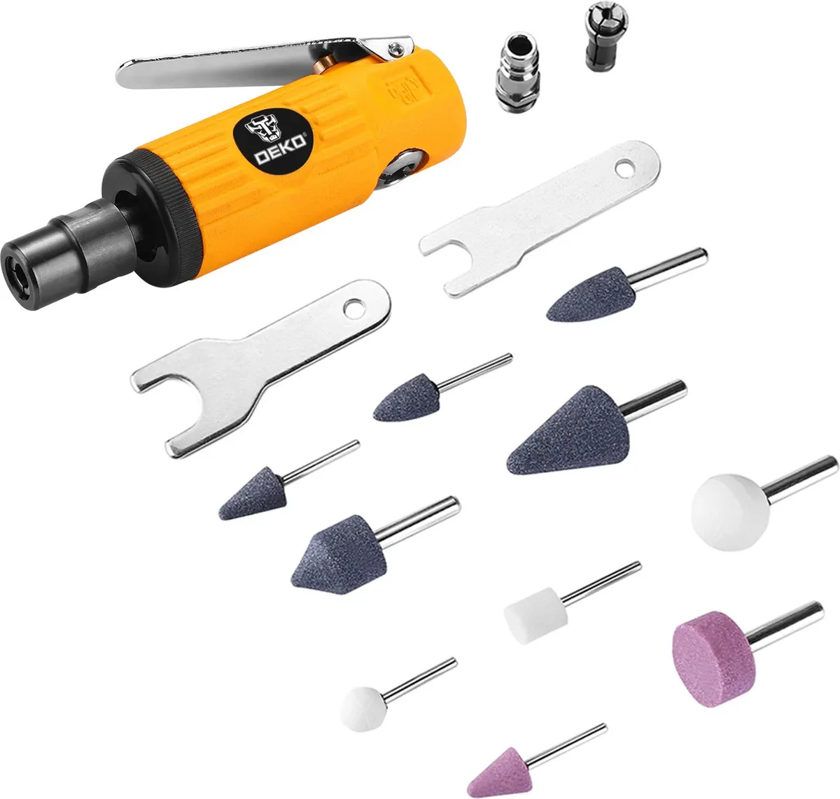 Пневматическая шлифмашина DEKO DKPT02 SET 3 в чемодане с набором 15 предметов. -