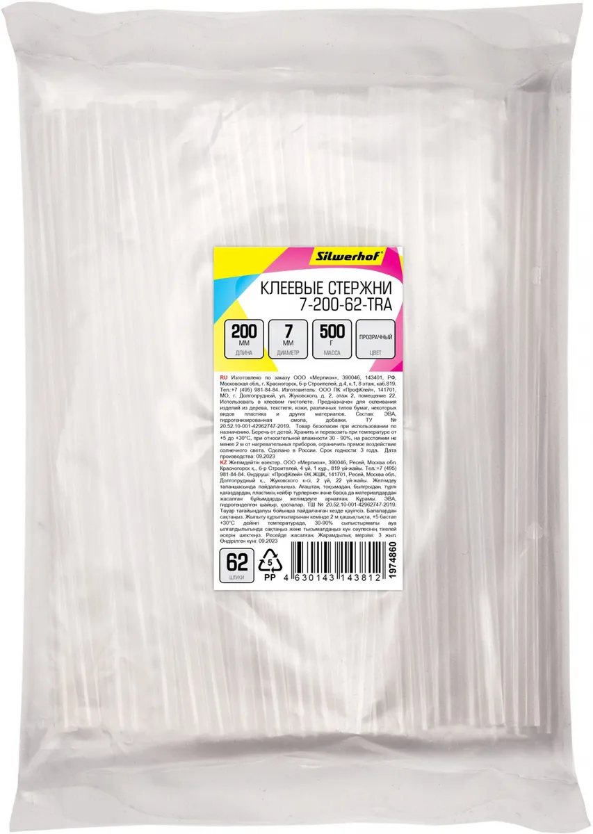 Cтержни клеев. для клеев.пист. Silwerhof 7-200-62-TRA дл.200мм D7мм (7-200-62-TRA)