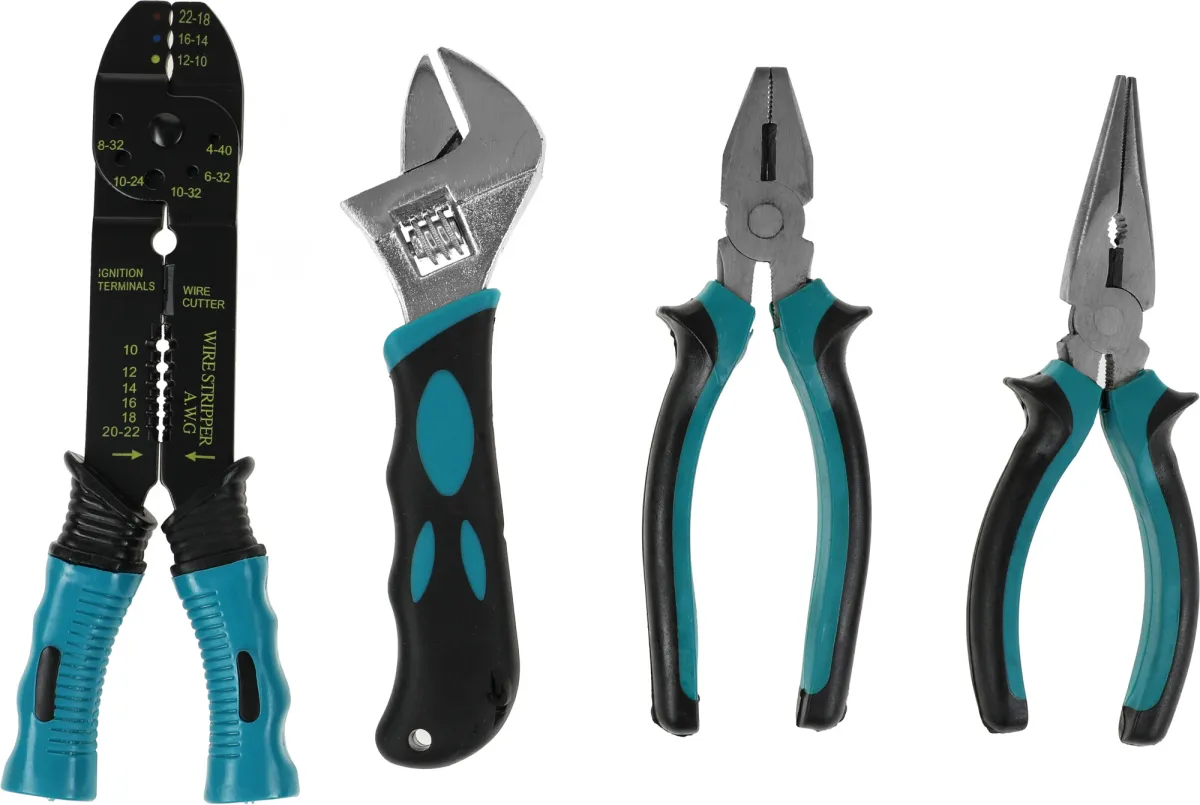 Часовая отвертка (2 шт), приспособление для зачистки проводов, ножовка, нож, мини-отвертка -