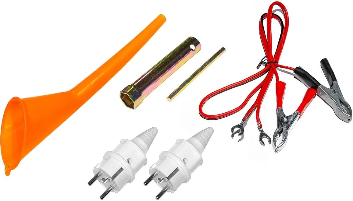 Электрическая вилка, свечной ключ, клемы, воронка. -