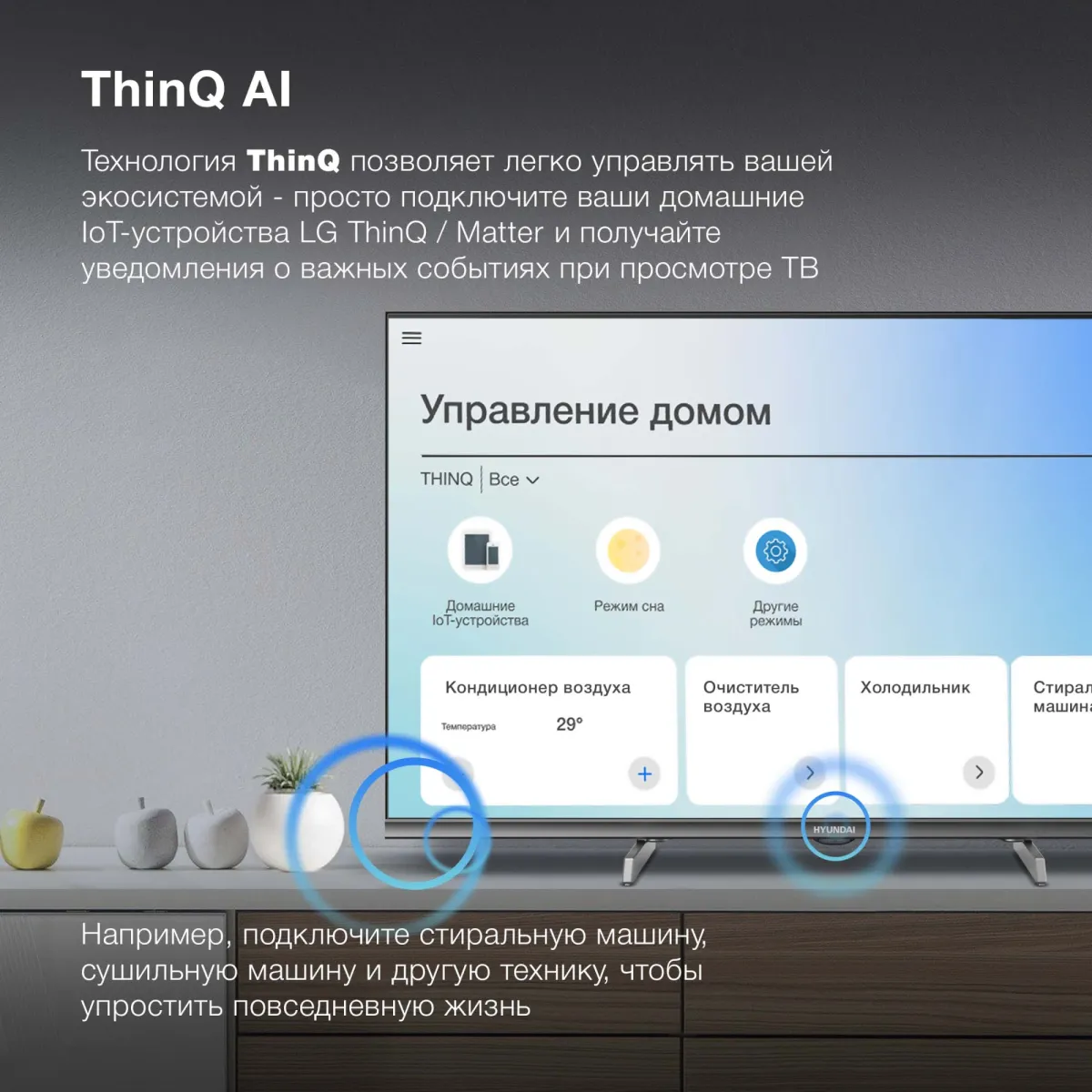 голосовое управление, пульт ДУ, родительский контроль, таймер включения/выключения, таймер сна, управление со смартфона -