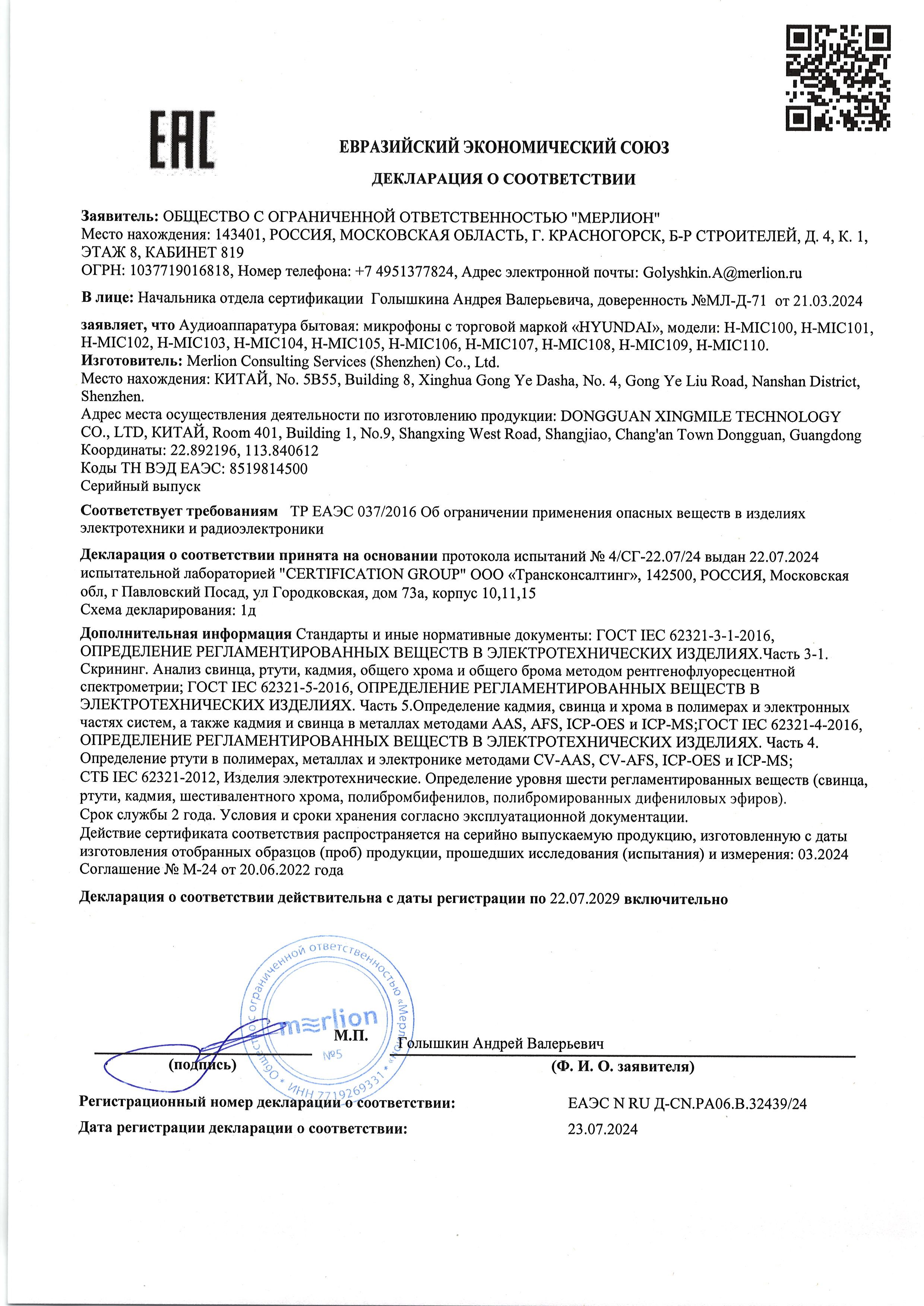 ЕАЭС N RU Д-CN.РА06.В.32439/24 | 22.07.2024 | 21.07.2029 |