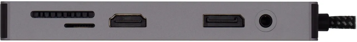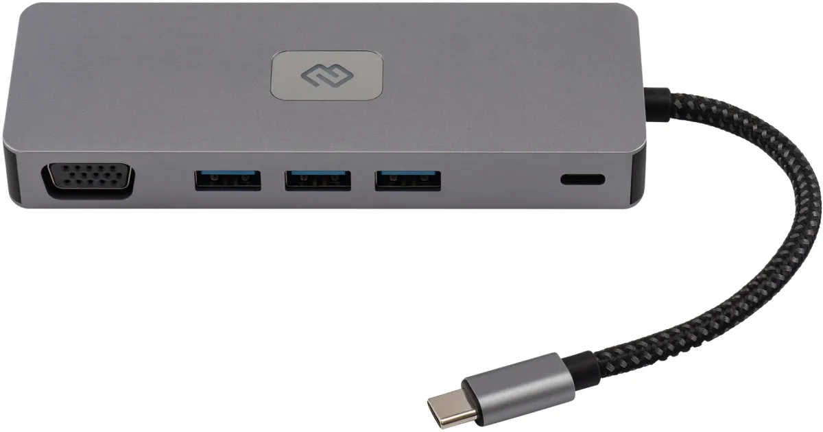 Type-C док-станция DIGMA, 11 портов. 1x HDMI( 4K@60Hz) +1 x DisplayPort ( 4K@60Hz) + 1 x VGA (Full HD@60Hz) +3 x USB-A 3.2(10Gbps) + 1 x Gigabit Ethernet + 1 x USB-C PD 3.0 100W + 1 x 3.5mm Audio + SD+ TF/MicrоSD -