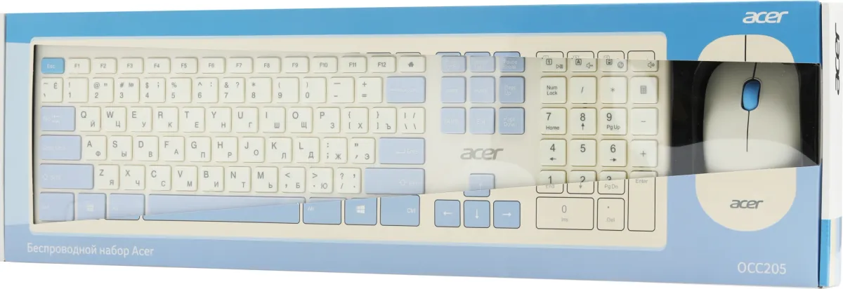 Клавиатура + мышь Acer OCC205 клав:белый/голубой мышь:белый/голубой USB беспроводная slim (ZL.ACCEE.00C)