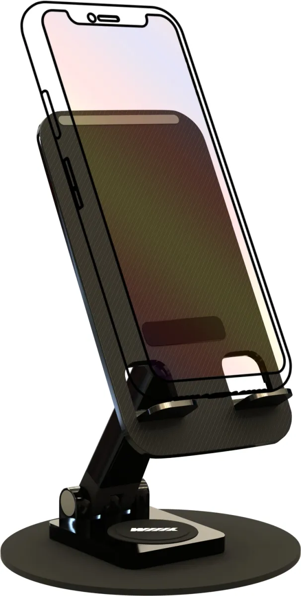 Настольная складная подставка для мобильных устройств. • компактный размер, легко складывается: можно брать с собой • подходит для смартфона и достаточно больших устройств (например, планшета) • повышенная устойчивость (утяжеленное металлическое основа